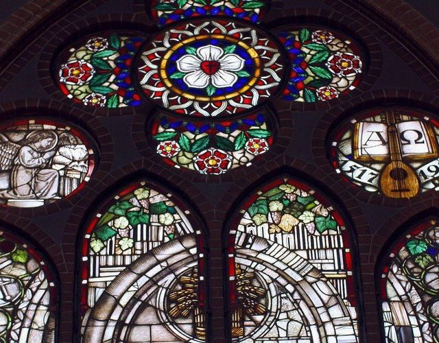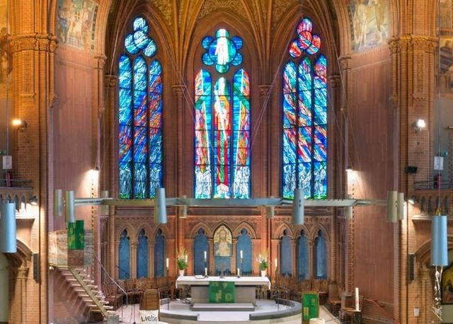 Gestiftet hat das Fenster der Bevollmächtigte der EKiD bei der Bundesregierung, Prälat Dr. Dr. Hermann Kunst.