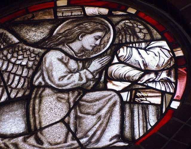 Das Fenster über der linken Empore zeigt die Berufung von Saulus/Paulus zum Apostel Jesu Christi vor Damaskus (Apg 9,1-19). Dieses Fenster zeigt dramatische Bewegung, ein Stil, der nur sehr kurze Zeit bei der Gestaltung von Kirchenfenstern von der Mayer‘schen Hofkunstanstalt gegen Ende des 19. Jahrhunderts angewendet wurde. In den Dreipassfenstern darüber waren die christlichen Tugenden Hoffnung (mit Anker), Glaube (mit Bibel) und Liebe dargestellt. Der Liebe als der größten unter ihnen (1. Kor 13,13) war auch das größte Fenster in der Mitte oben vorbehalten. Aber die Liebe ist dem Krieg zum Opfer gefallen – ein symbolträchtiger Vorgang!