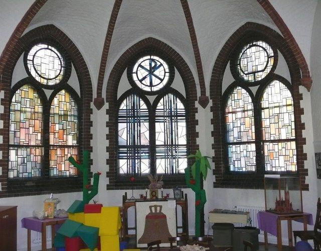 Der Altarraum wurde bei der Renovierung 1960/61 modern gestaltet, doch ist der neue Altar aus Teilen des alten, der Taufstein aus dem alten Kanzelfuß hergestellt worden. Den Taufstein ziert ein Band aus 14 Fischen. Der Fisch ist ein altchristliches Symbol für Jesus Christus, die Christen und die Taufe. Das Lektorenpult ist aus alten Kirchenbänken gearbeitet worden.