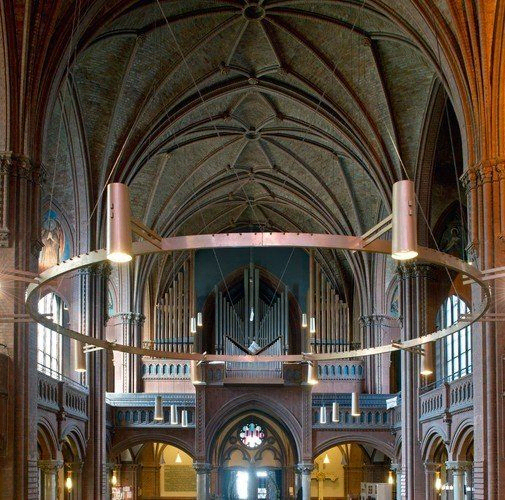 Das heutige Instrument mit 38 klingenden Registern auf drei Manualen und Pedal ist als wichtiger Bestandteil der Kirchensanierung in den 1960er Jahren konzipiert. Monumental wie massiv thront es an der Rückwand auf der Empore und ist das klingende Gegenüber von Wort und Sakrament. Die Größe der Orgelempore lässt die Orgel jedoch eigenartig im Dunkel und klanglich (auch durch die gedämmte Akustik) verschwinden; allein das Rückpositiv an der Brüstung der Empore schwebt sichtbar wie klanglich im Raum.