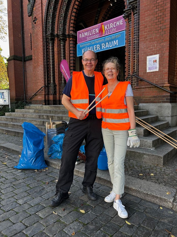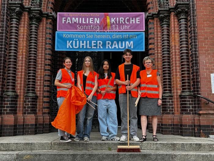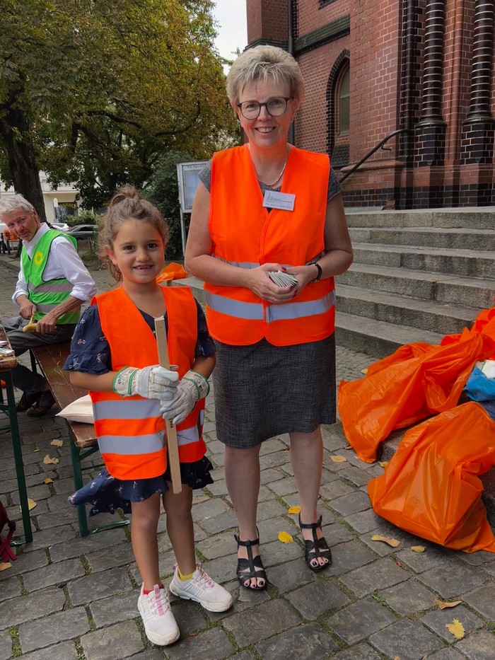 Am Vormittag trafen sich Menschen aus der Gemeinde, Jung und Alt, Mitglieder der Grünen und AnwohnerInnen, um gemeinsam rund um die Apostel-Paulus-Kirche Müll zu sammeln und ein sichtbares Zeichen für einen sauberen und lebensfreundlichen Akazienkiez zu setzen. Sogar Bezirksbürgermeister Jörn Oltmann schaute vorbei und schwang den Besen.